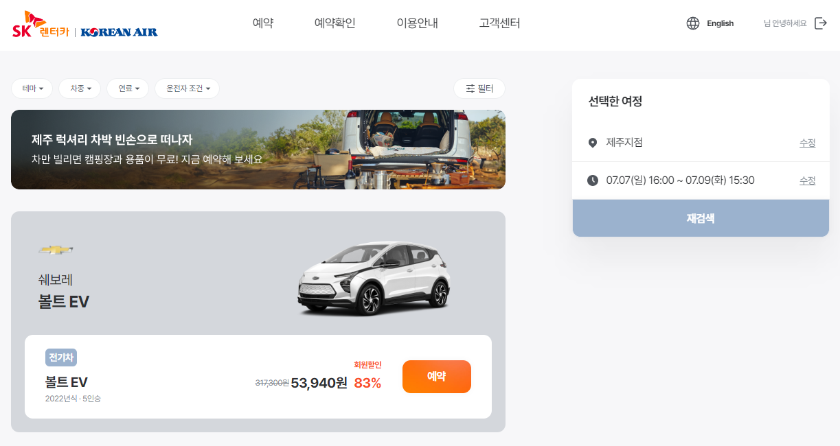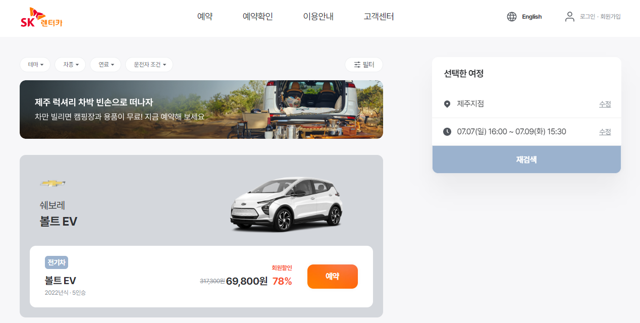 제주도 sk 렌터카 할인받기(T멤버쉽 제외)